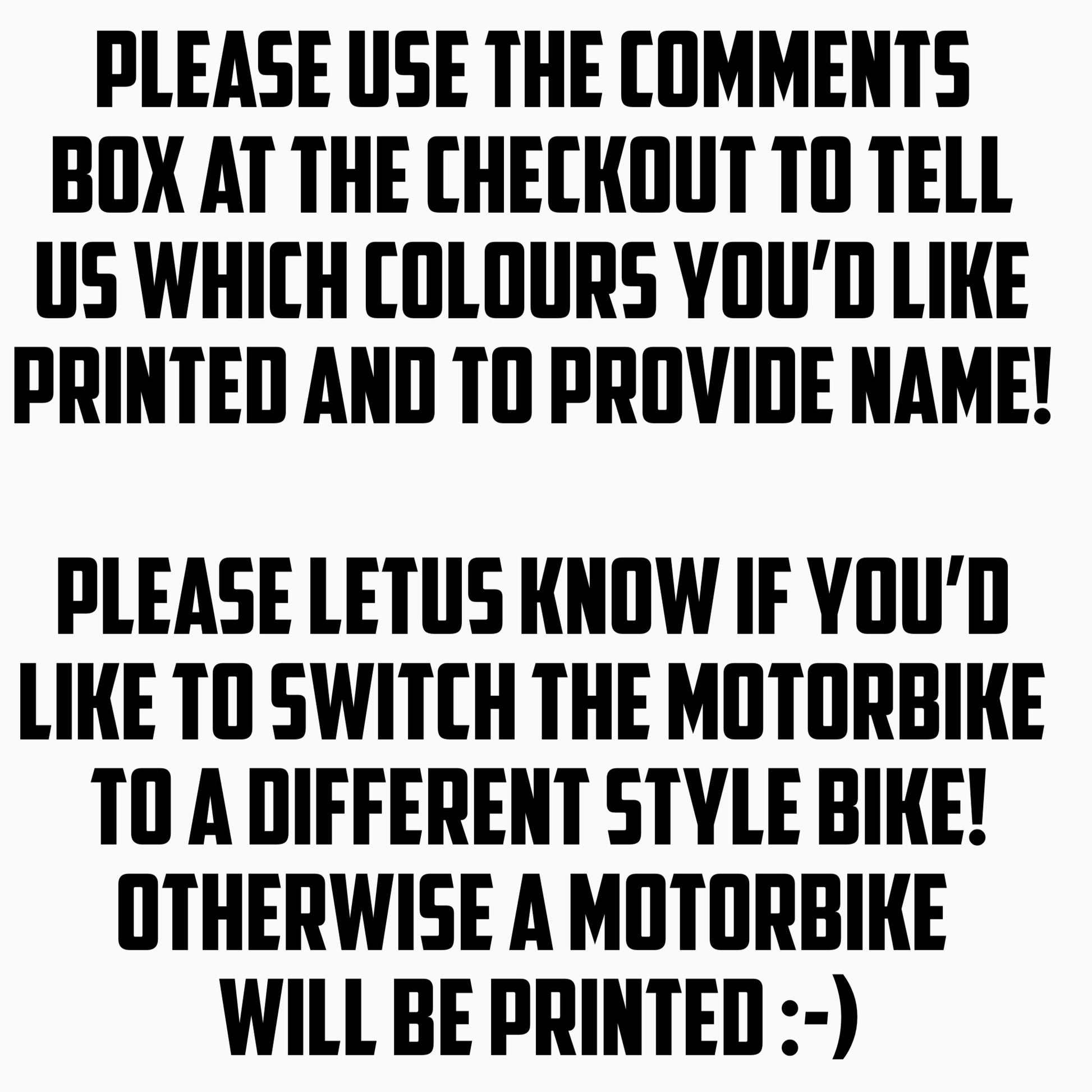 Any two colours. Use the comments box at the checkout to tell us which two colours you’d like printed!
