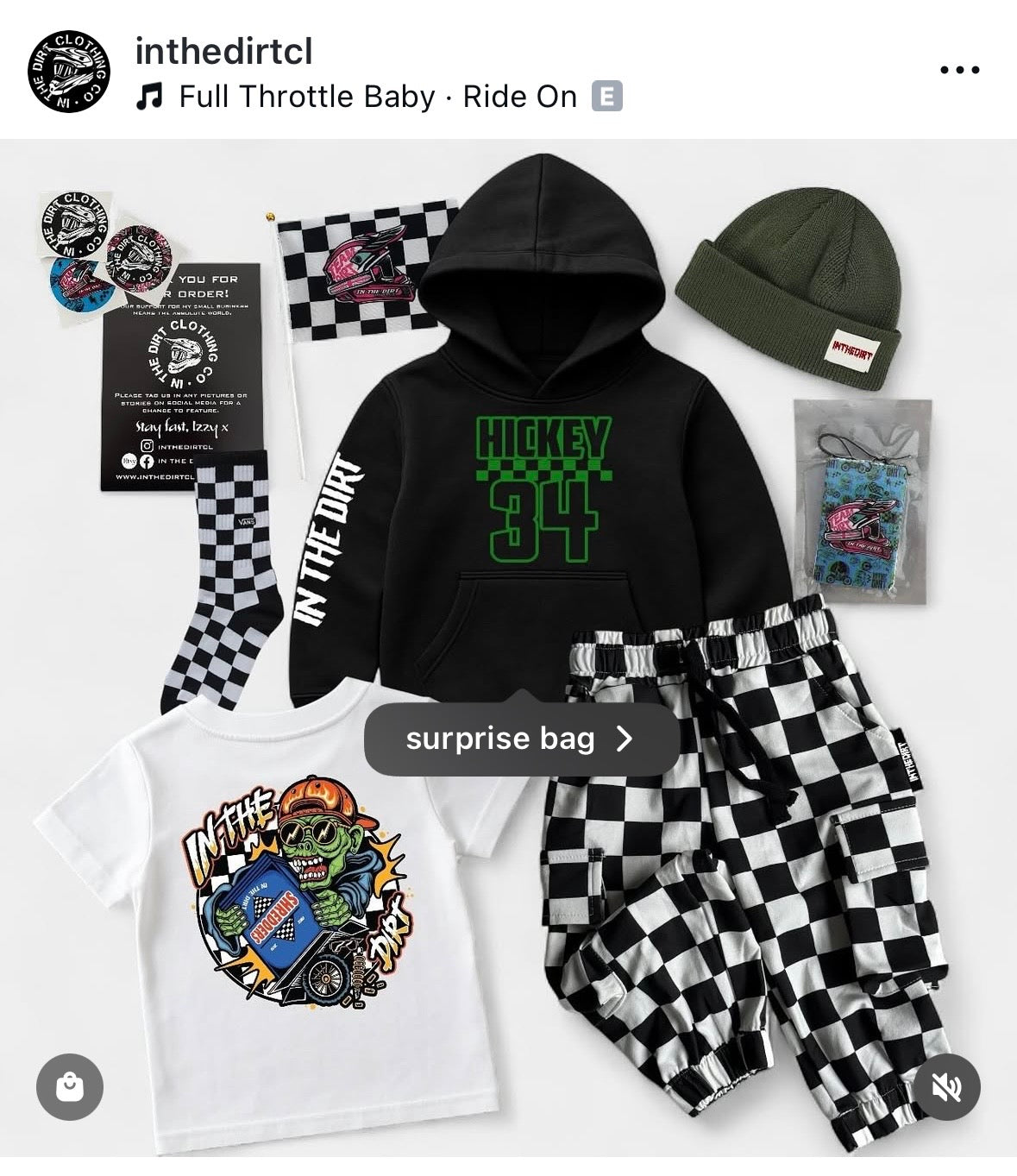 A mix of 3-4 items. Please leave your insta in the comments box for me to have a nosey at your page for inspo on your style! Bag will consist of goodies custom made for you that you’ll love! Split between siblings using the comments box at the checkout!